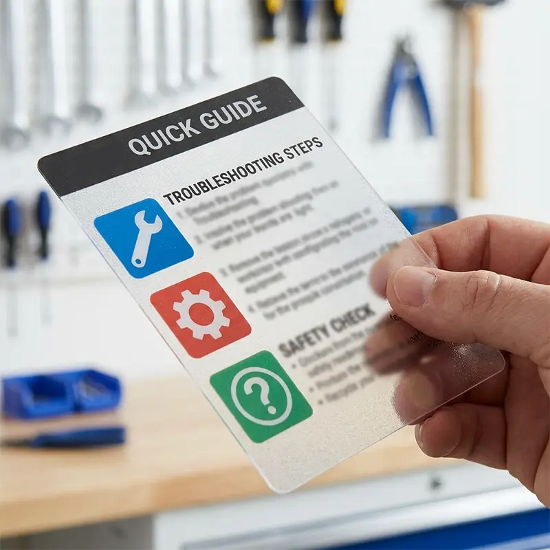 Individuell bedruckte Kurzanleitungen als Bedienungs- oder Montageanleitung. Aus Kunststoff, SK-Folie, Karton oder Papier.